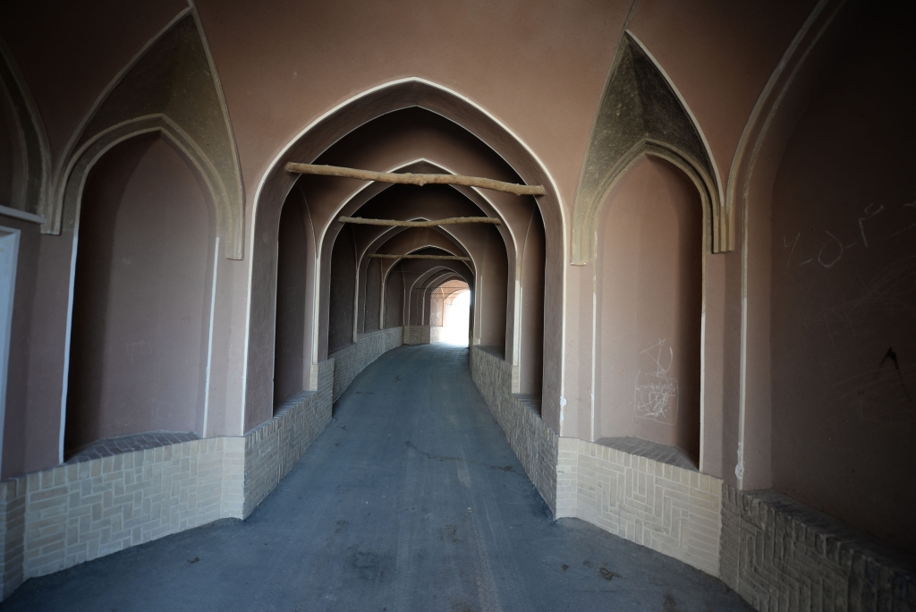 کوشک مرکزی باغ فین که عمارت «شترگلوی صفوی» نیز گفته می شود، به دستور شاه عباس اول صفوی و به همت آقاخضر نهاوندی، حاکم وقت کاشان ساخته شد. این کوشک به منظور برگزاری مراسم، تفریح، تفرج و بار عام ساخته شد. این بنا در دو طبقه با معماری برونگراست که فضای آن از هر چهارسو به باغ گشوده می شود و در محل تلاقی محورهای اصلی قرار دارد. این کوشک از خشت و گل و آجر ساخته شده است و در مرکز آن حوضی است فیروزه ای رنگ که آب از درون آن می جوشد و با توجه به شکل و مسیر خاص حرکت آب از کانال زیرزمینی به درون حوض، که شبیه گردن شتر است، شترگلو نیز خوانده می شود. در دوره شاه صفی نیز عمارت زیبای کلاه فرنگی با چوب و آهن در دو طبقه بر فراز ساختمان کوشک الحاق شد که امروزه اثری از آن وجود ندارد. موقعیت این کوشک در محل تلاقی طولی و عرضی و نیز جریان جوهای اصلی باغ از جمله شاخص های برتری این کوشک و از ویژگی های بارز باغ ایرانی است.
