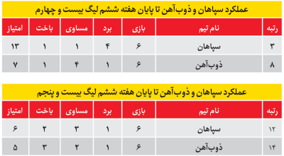 به گزارش اصفهان زیبا؛ دو تیم اصفهانی در شرایطی مهیای رقابت در هفته هفتم لیگ برتر فوتبال میشوند که از لحاظ آماری، مقایسه دو تیم در پایان هفته ششم روندی نزولی را نشان میدهد.