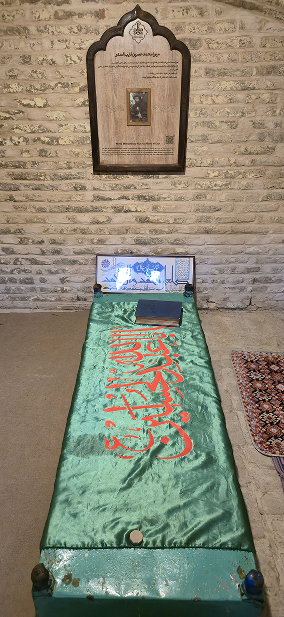 سردابه خاتونآبادی و قبر نایبصدر در تخت فولاد اصفهان در تکیه خاتونآبادی قرار دارد. جبهه غربی صحن تکیه خاتونآبادی شامل یک ایوان در گوشه شمال غربی است که مَدرَس و مدفن میر سید محمد اسماعیل خاتون آبادی در پشت این ایوان قرار گرفته است. این مَدَرس به شکل چهار صفه است که قبر میر محمداسماعیل در صفه جنوبی آن قرار دارد. در زیر مدرس سردابی است که محل عبادت و ریاضت میرسید محمداسماعیل بوده و بالای مدرس اطاقی است کوشکمانند که از سه جبهه شمالی و شرقی و جنوبی دارای ایوانچهای بوده و جبهه غربی آن بسته بوده است. روی این اتاق بالای مدفن گنبدی نار با کاشیکاری معرق و با طرح اسلیمی زیبا و با رنگ غالب لاجوردی و سفید بر زمینه فیروزهای است و در کل معماری بنا به شیوه اصفهان است. در جبهه غربی صحن بعد از ایوان مذکور دو اتاق و یک سردابه است که قبر حاج میرزا حسین نایب الصدر در آن سردابه قرار دارد و صورت قبوری در دو اطاق غربی از خاندان خاتون آبادی موجود است.