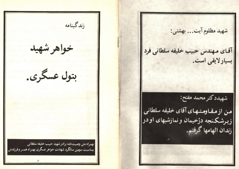 [اصفهان زیبا: در این قسمت از جزوه متن وصیتنامه شهید حبیب خلیفه سلطانی قرار گرفته است که در مطلب جداگانه ای به آن پرداختهایم: اینجا]