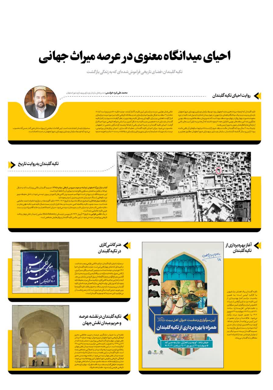 تکیه گلبندان که ازجمله میراث تخریبشده اصفهان بود، توسط سازمان نوسازی و بهسازی شهر اصفهان بازسازی و مرمت و به یک میدانگاه و فضای باز شهری در جوار میدان امام(ره) تبدیل شد.