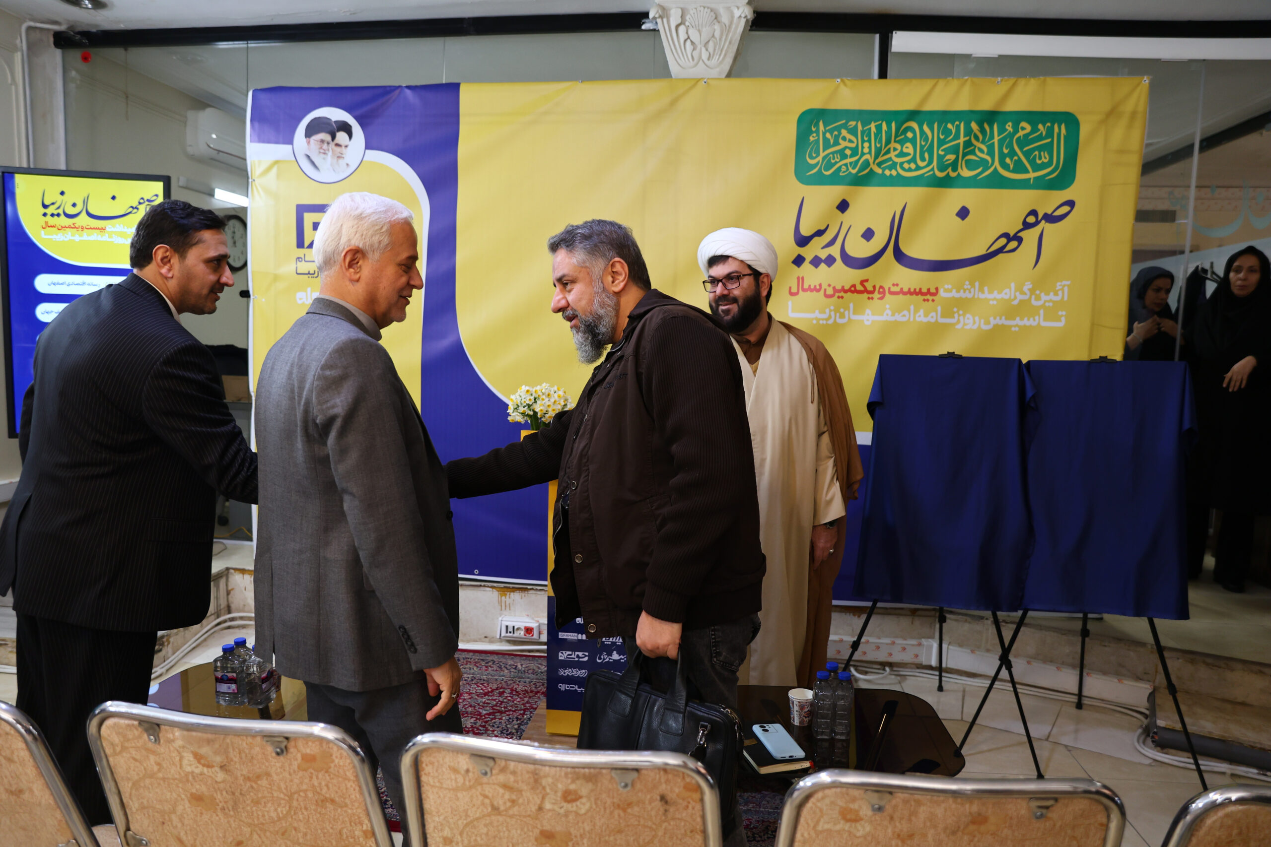 صندلیها بهردیف در کنار هم چیده شدند تا فضای میزبانی از یاران روزنامه که خود حالا میهمان شده بودند، در کنار حضور آقای شهردار، فراهم شود. همه ردیفها پر شد از حضور روزنامهچیها و ردیف اول را نیز دکتر علی قاسمزاده شهردار اصفهان، سید علی معرکنژاد مدیرکل ارتباطات و امور بینالملل شهرداری اصفهان، وحید ملتجی و سید جواد میرمعصومی از اعضای هیئتمدیره، بههمراه حجتالاسلام احسان تیموری مدیرعامل و محمدحسین اعتزازیان سردبیر روزنامه «اصفهانزیبا» پر کردند. بوی خوش دستهگل نرگس روی تریبون فضا را آکنده کرده بود. محمدحسین محسنی نیز سکاندار اجرای برنامه بود و با اشعار و اجرای دوستداشتنی فضا را گرم و صمیمانه میکرد.